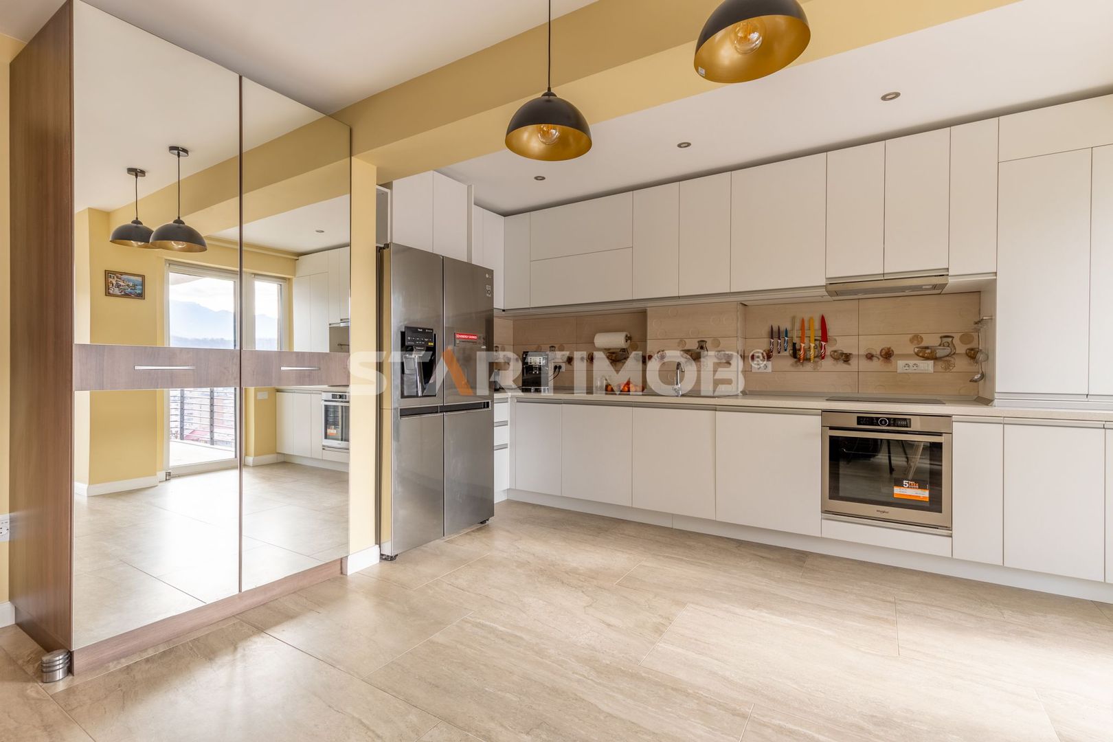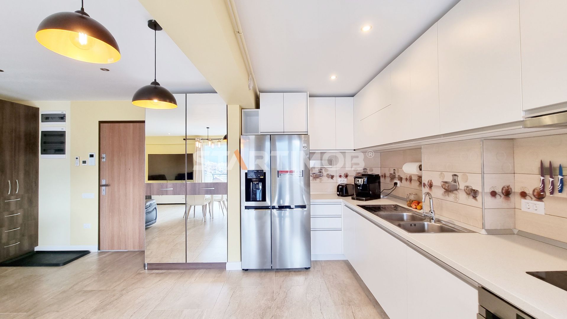 Apartamentul se afla la prima inchiriere, dispune de utilitati separate, incalzire in pardoseala cu centrala termica proprie marca Baxi, tamplarie PVC cu geam termopan, parchet, gresie, faianta, iar printre dotari mentionam bucataria mobilata si utilata cu plita pe inductie Electrolux, cuptor Electric Whirlpool, hota electrica Bosch, combina mare frigorifica LG, masina de spalat vase Bosch, cafetiera DeLonghi si toaster, masina de spalat automata si masina de uscat rufe marca AEG, TV LCD in living marca Samsung diagonala mare, sistem de aer conditionat dual inverter marca LG in living si dormitoare, masa dining si canapele extensibile in living, birouri cu scaun office in dormitoare, router si conexiune WI-FI cu contract internet si cablu in derulare, etc .
