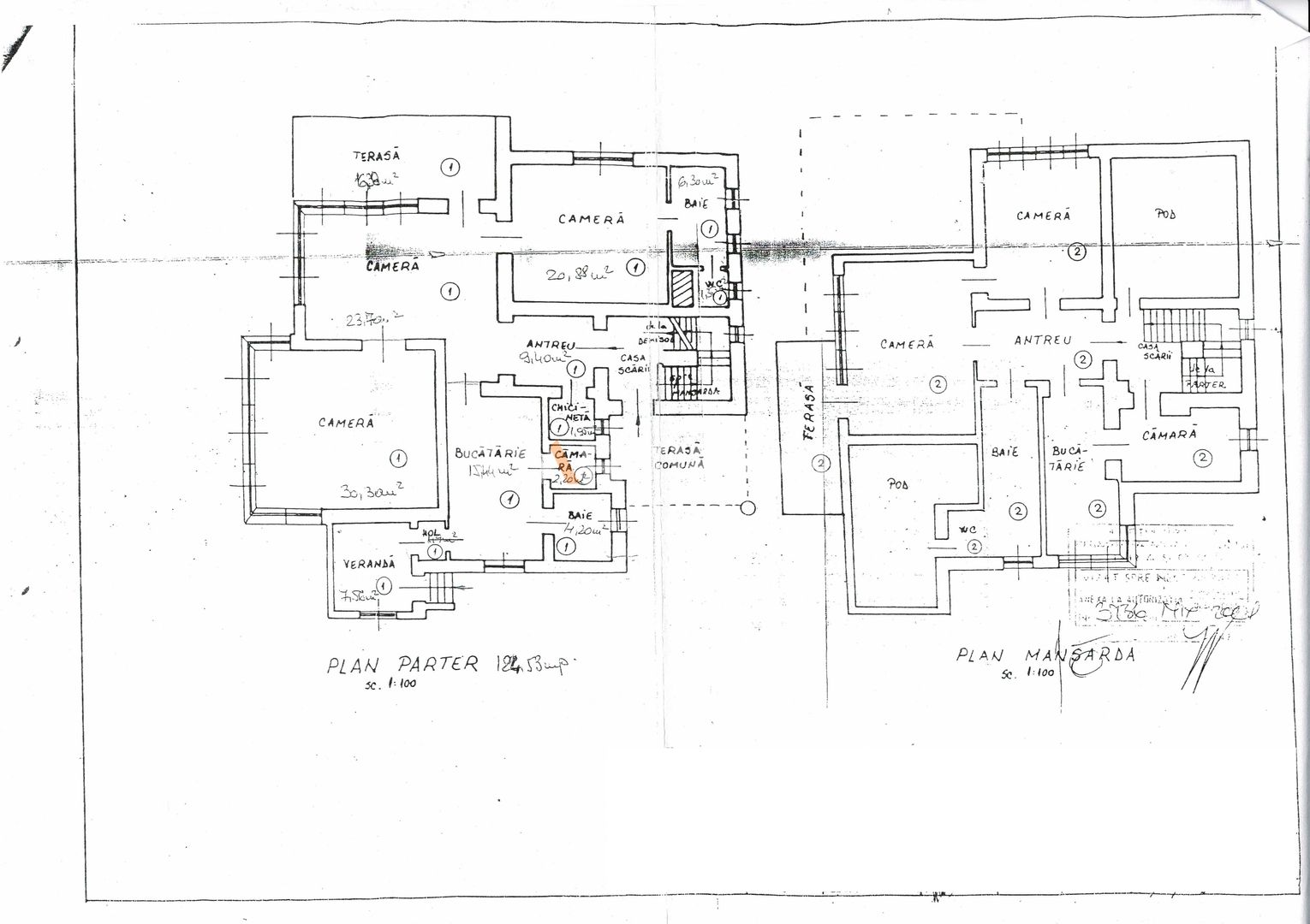 Apartamentul are o pozitionare sud-estica, este situat la etajul 1/2 fiind singur pe palier, are o suprafata totala de 170 mp, o arie utila de 124 mp si o structura decomandata, cu urmatoarea componenta : 3 camere, bucatarie tip kitchineta si dining, 2 bai - ambele cu aerisire naturala, Wc, camara, hol, veranda, terasa de 18 mp, antreu, pivnita, pod, garaj si cota de 43,20% din partile de uz comun in care intra si terenul de 926,70 mp, terasa de la parter, podul,etc .