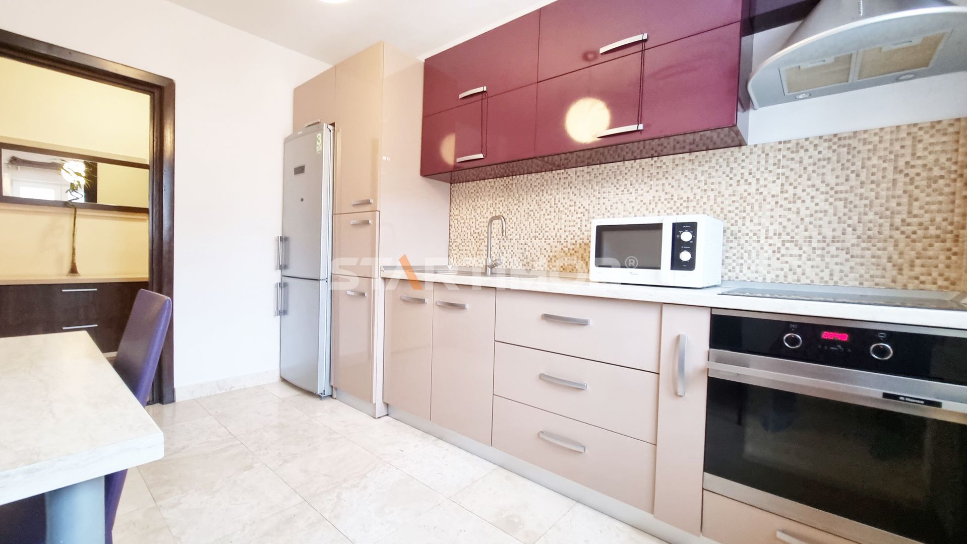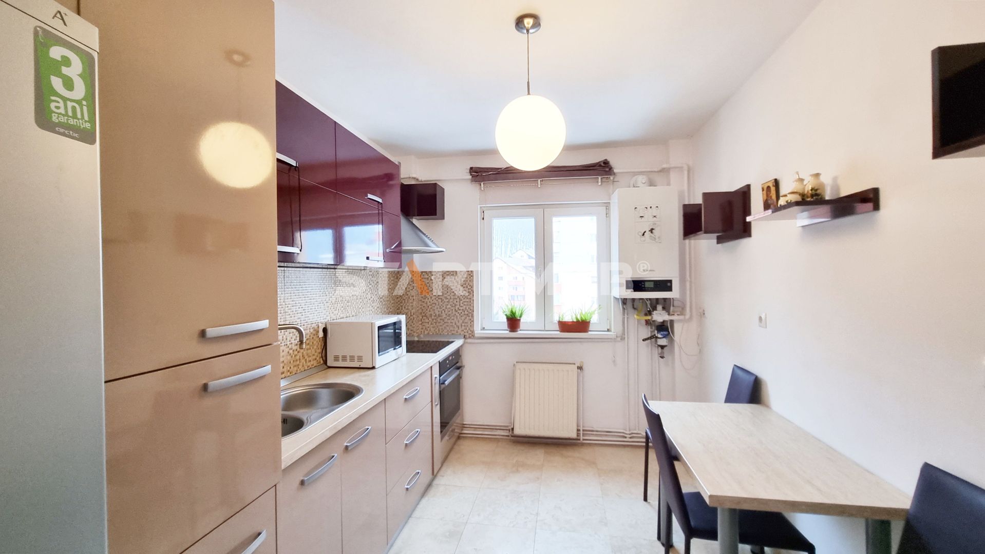 Apartamentul este insorit , este mobilat si dotat asa cum se prezinta in fotografii , iar printre dotari mentionam combina frigorifica Arctic, cuptor electric, plita Shott Ceran si hota electrica marca Hansa, masina de spalat vase si masina de spalat automata Whirlpool, etc.