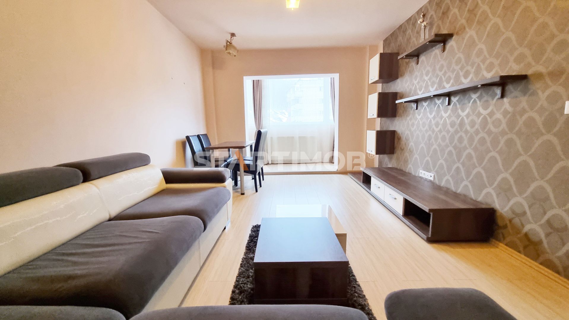 Compania STARTIMOB va propune spre inchiriere un apartament mobilat si utilat situat in cartierul Racadau, intr-un bloc anvelopat termic amplasat pe str Macesului, in apropierea parcului si a Complexului ''URSU''.