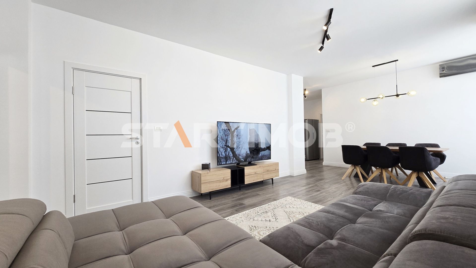 Pe lângă amplasament si compartimentarea functionala, proprietatea se distinge prin conceptul simplu și elegant, in stil minimalist. Unul dintre dormitoare este nemobilat si se poate amenaja ca si spatiu de birou sau camera pentru copii , celalalt este suav ambientat amenajat in jurul ideii de simplitate si confort, iar livingul este simplu, minimalist, functional, in directa conexiune cu diningul si bucataria.