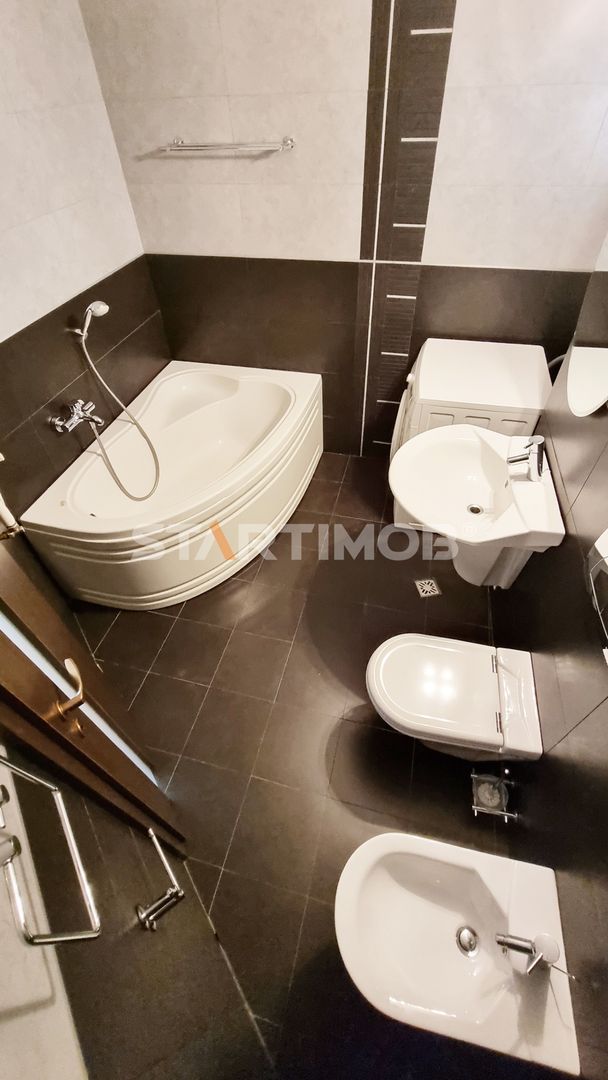 Apartamentul beneficiaza de multa lumina naturala datorita spatiilor vitrate mari si a pozitionarii sud-vestice, este semimobilat si utilat asa cum se prezinta in fotografii, zugravit in lavabil si renovat recent, dispune de utilitati separate, conexiune internet si cablu TV ( chiriasul va incheia contract in nume propriu cu unul dintre furnizorii agreati), incalzire cu centrala termica proprie Vaillant, tamplarie PVC cu geam termopan, iar printre dotari amintim linia de bucatarie Ariston ( cuptor electric si plita pe gaz, hota electrica si combina frigorifica), masina de spalat automata marca Electrolux, TV LG, etc.