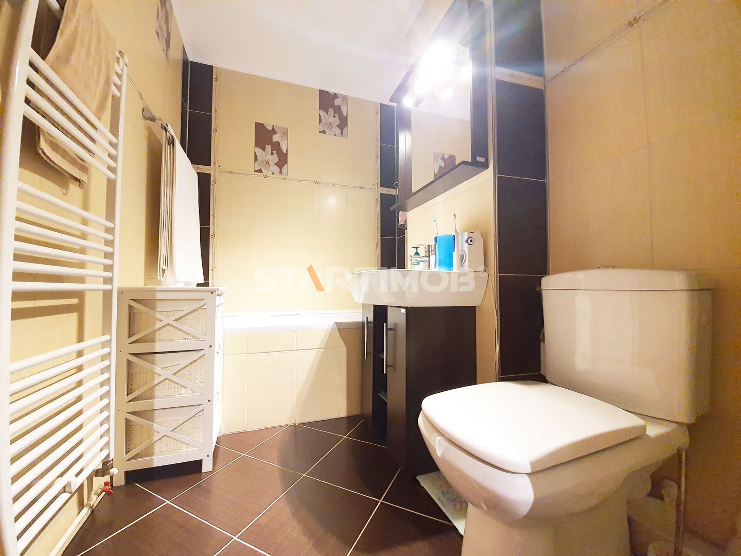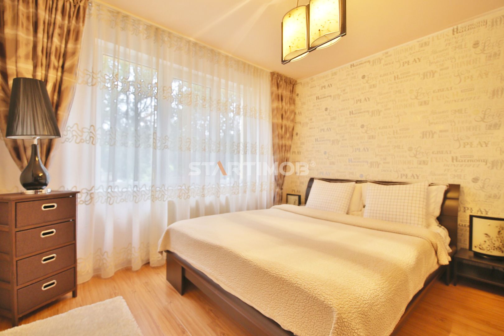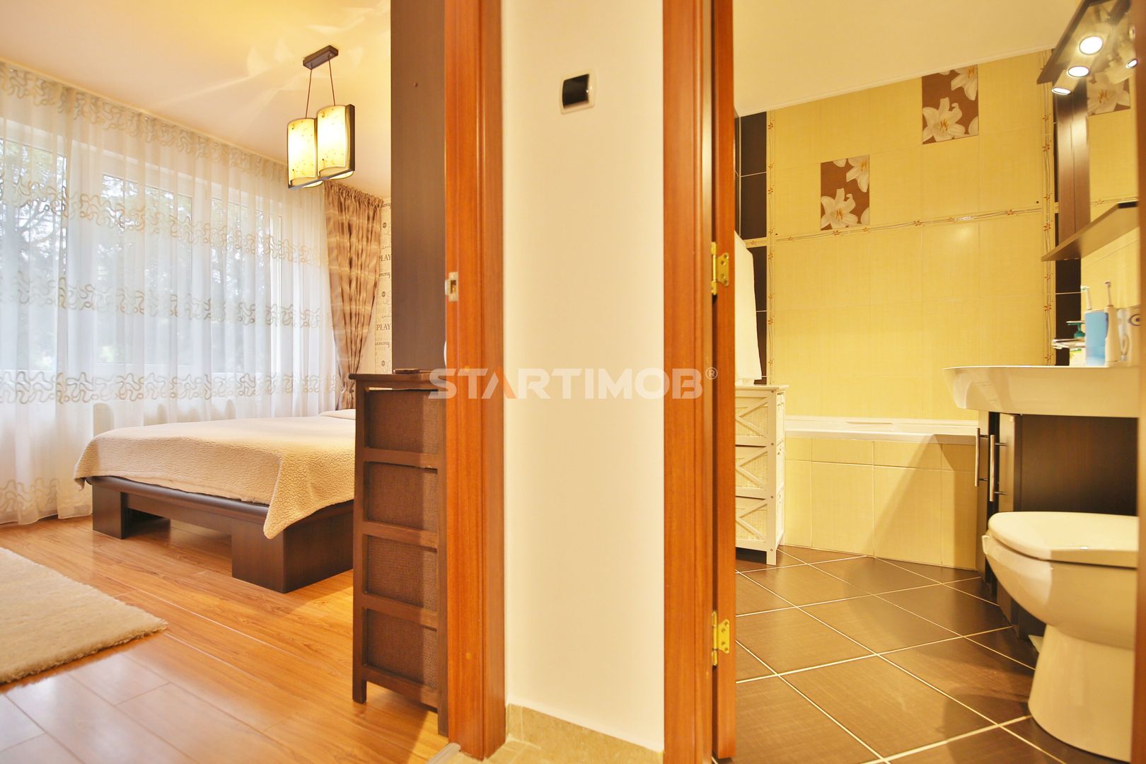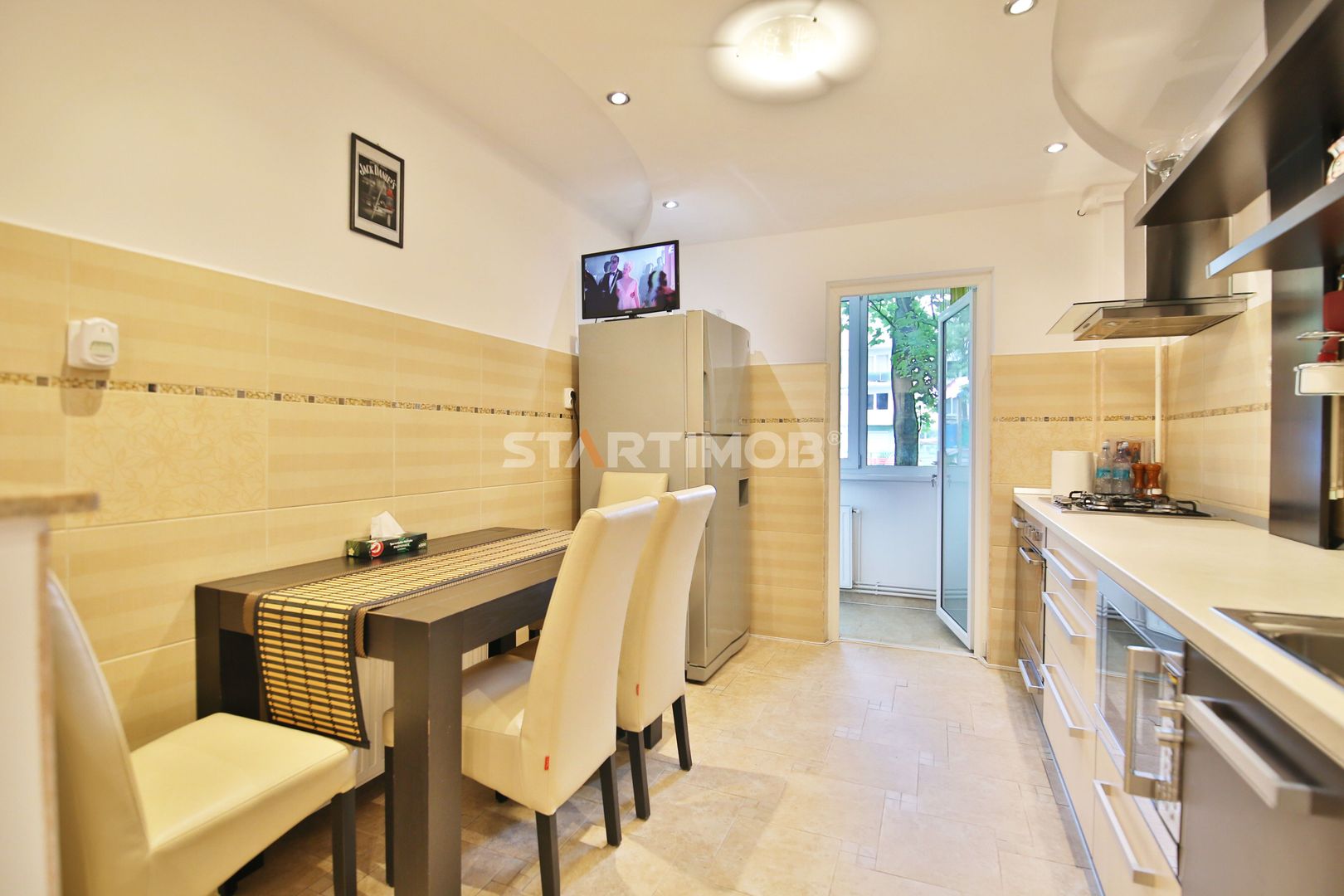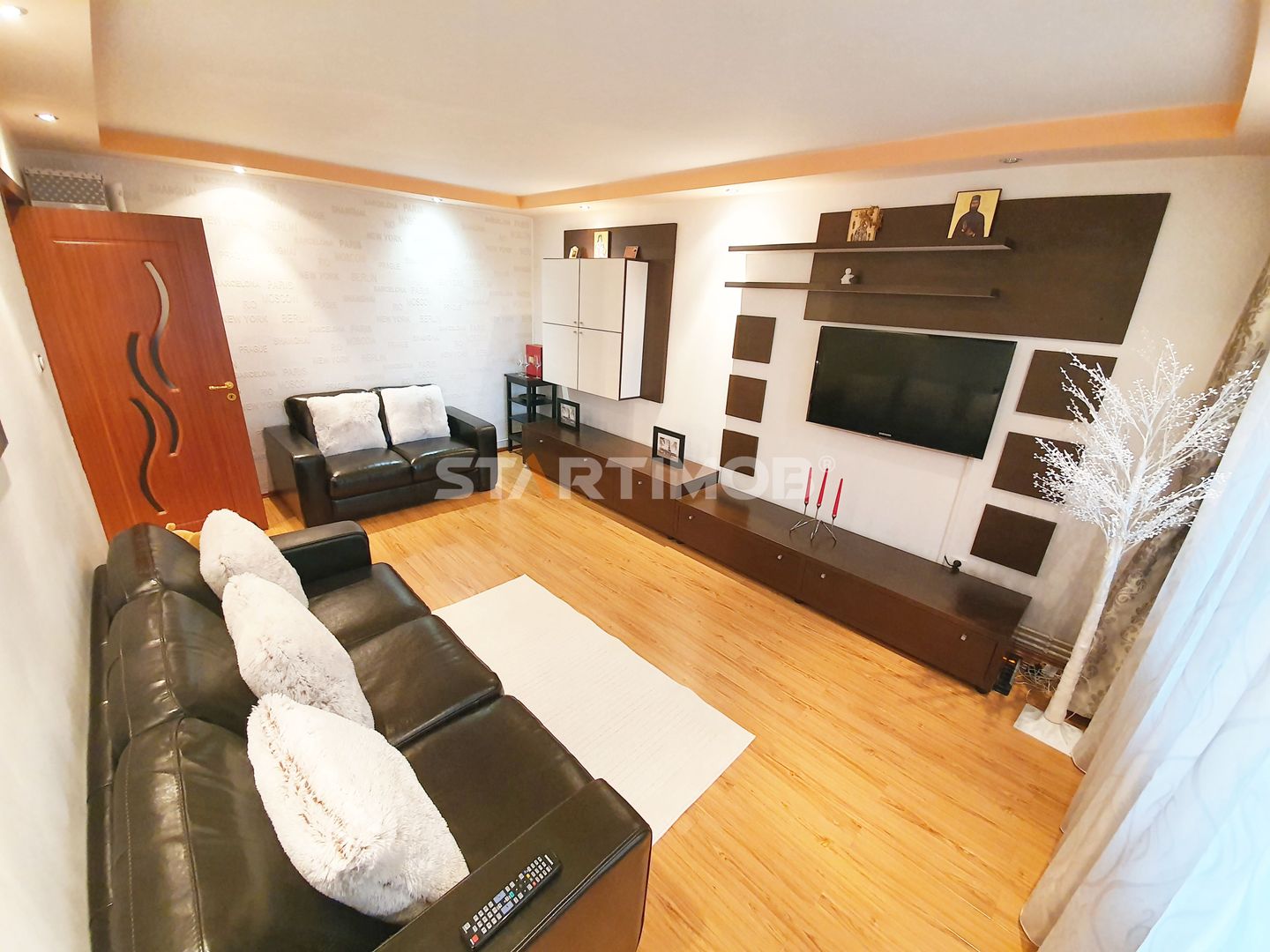 Apartamentul este complet mobilat si utilat, fiecare camera dispune de TV, conexiune cablu si internet in derulare si router wireless, centrala termica proprie, parchet, tamplarie PVC cu geam termopan, masina de spalat automata, bucatarie mobilata complet si echipata cu electrocasnice precum combina frigorifica, cuptor electric si plita pe gaz, hota electrica si cuptor cu microunde- linie Franke .