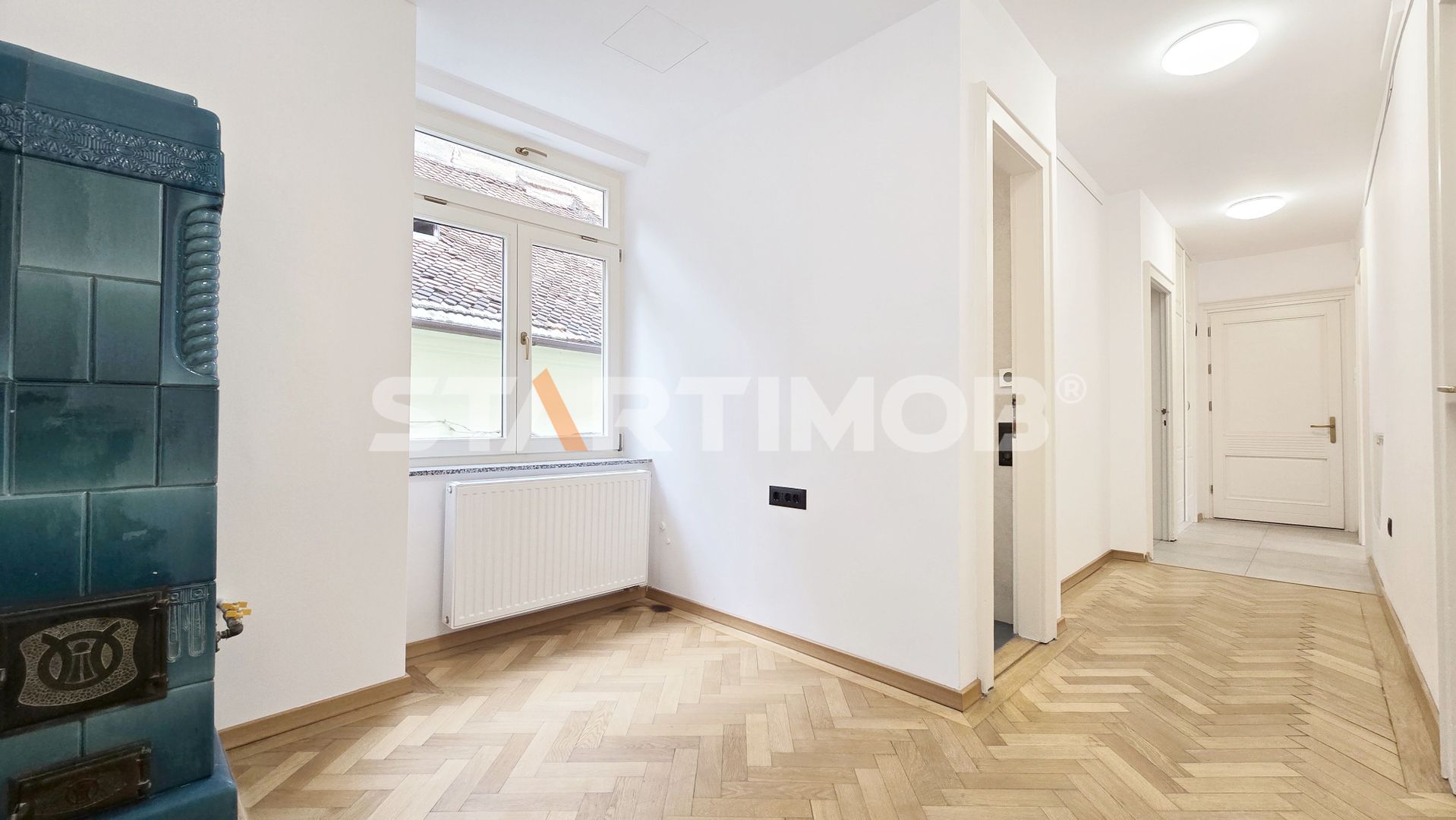 STARTIMOB va propune spre inchiriere un apartament situat la etajul 1 al unei vile din Centrul istoric al Brasovului, zona Bisericii Negre, cu acces facil la servicii : statie de transport in comun, complexe comerciale si supermarket-uri, cabinete particulare, unitati de invatamant , spitale, farmacii si banci, etc.