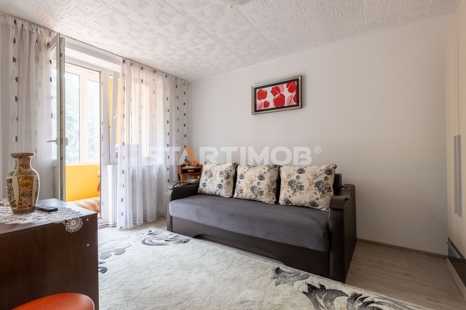 Apartamentul este insorit avand o pozitionare sudica, este retras de la bulevardul principal si inconjurat de multe zone verzi, dispune de toate utilitatile separate, are o suprafata totala de 51,4 mp avand in componenta un living de 16 mp, bucatarie de 8,5 mp, hol de 4,7 mp, un dormitor de 11,8 mp cu balcon de 4,2 mp inchis in termopan, baie cu dus si aerisire naturala , debara si camara .