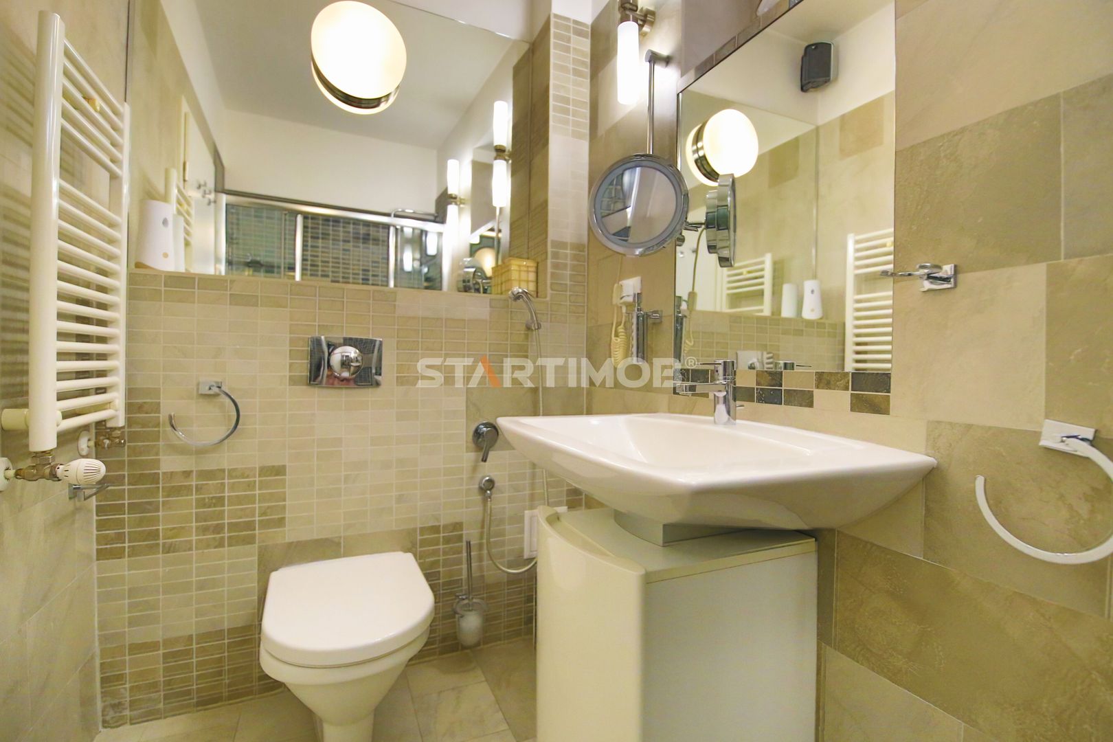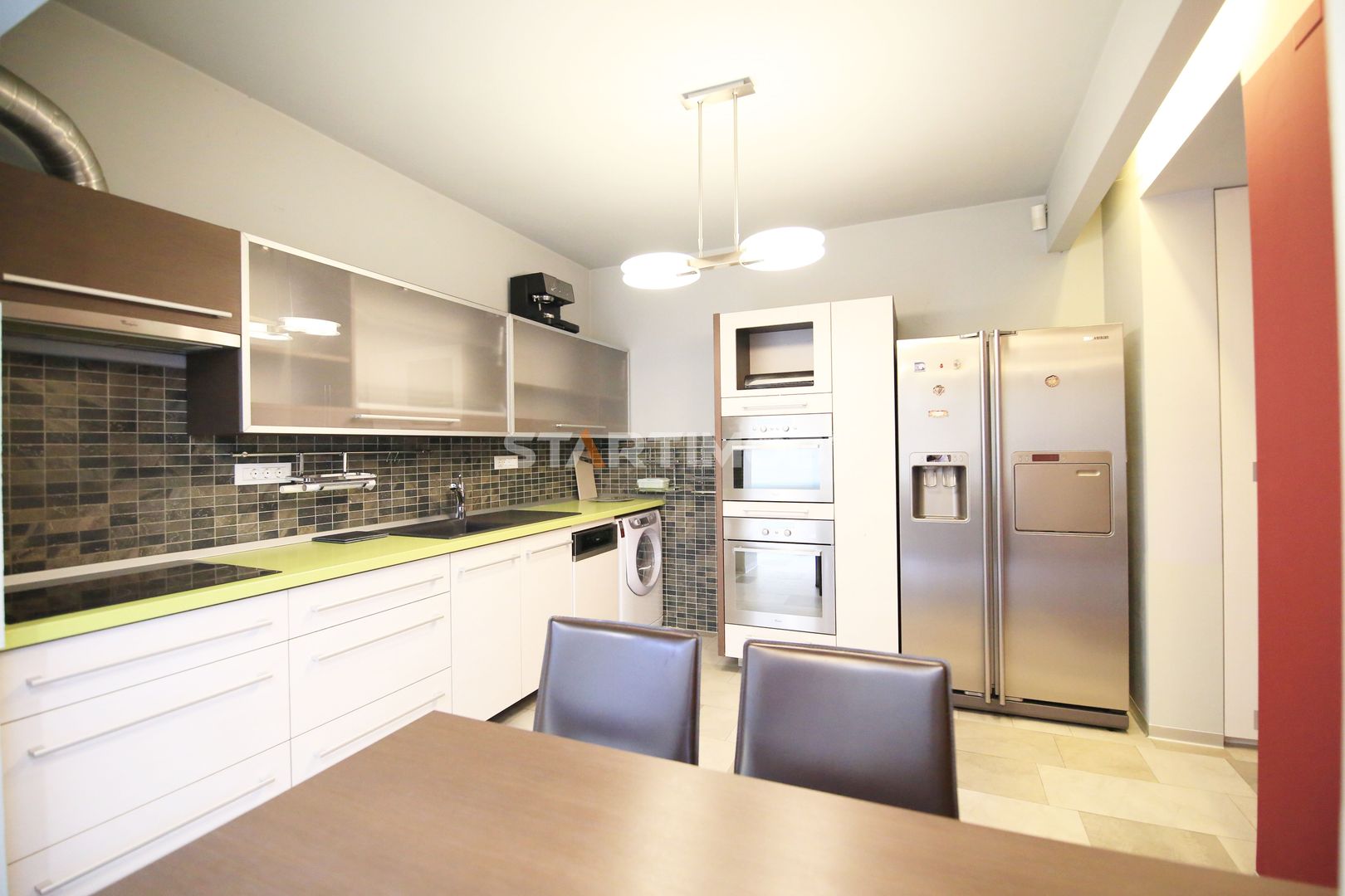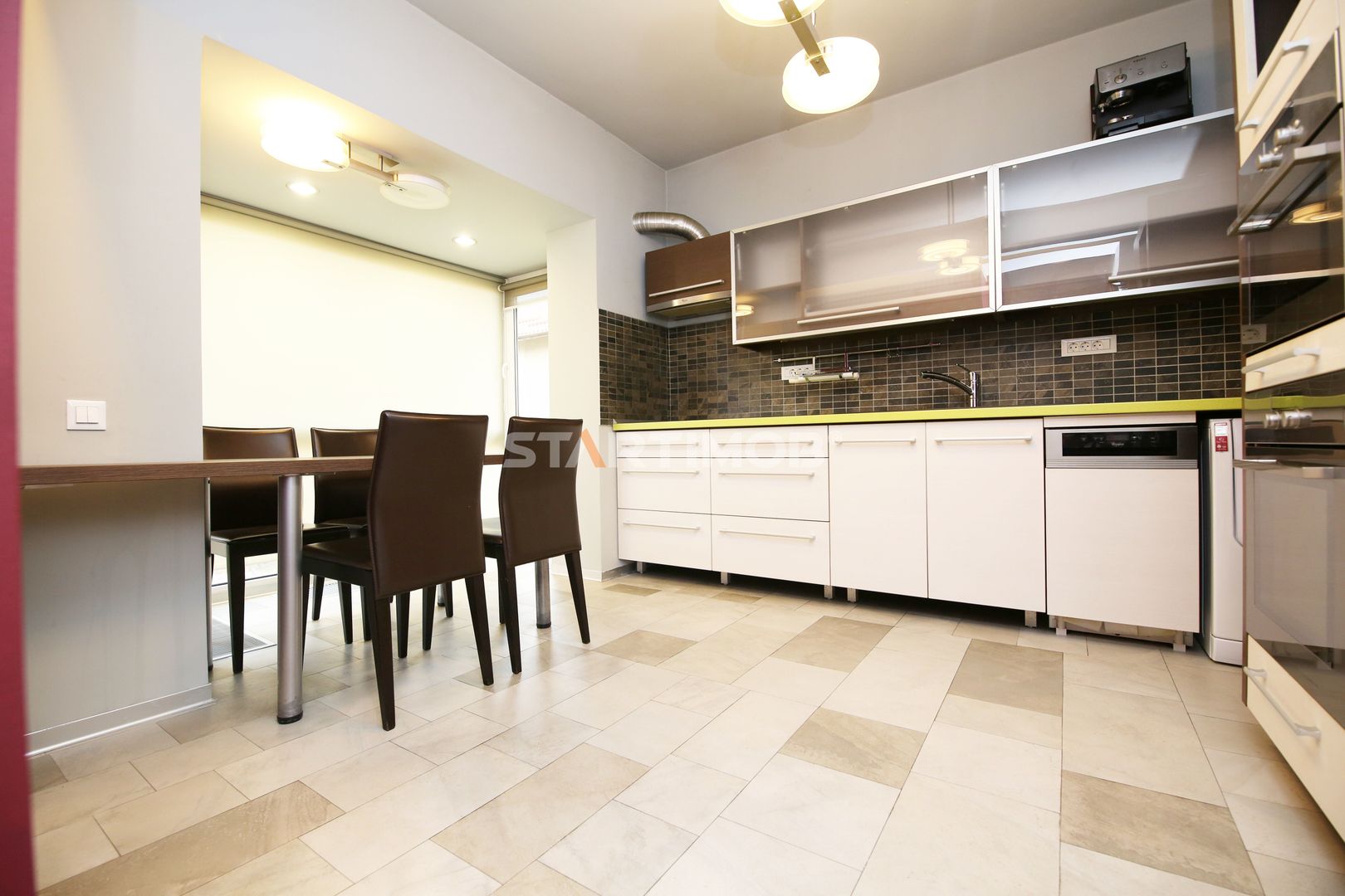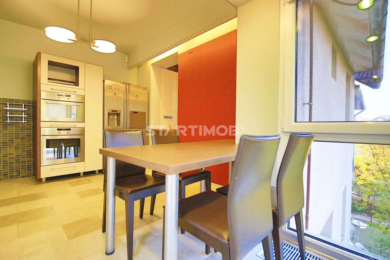 Apartamentul dispune de finisaje deosebite, incalzire in pardoseala si suplimentar cu calorifere, aparate de aer conditionat, masina de spalat automata si masina de spalat vase, centrala termica proprie Vaillant cu boiler in condemsatie, tamplarie de lemn cu geam termopan, garaj mare, incalzit , cu usa automatizata .