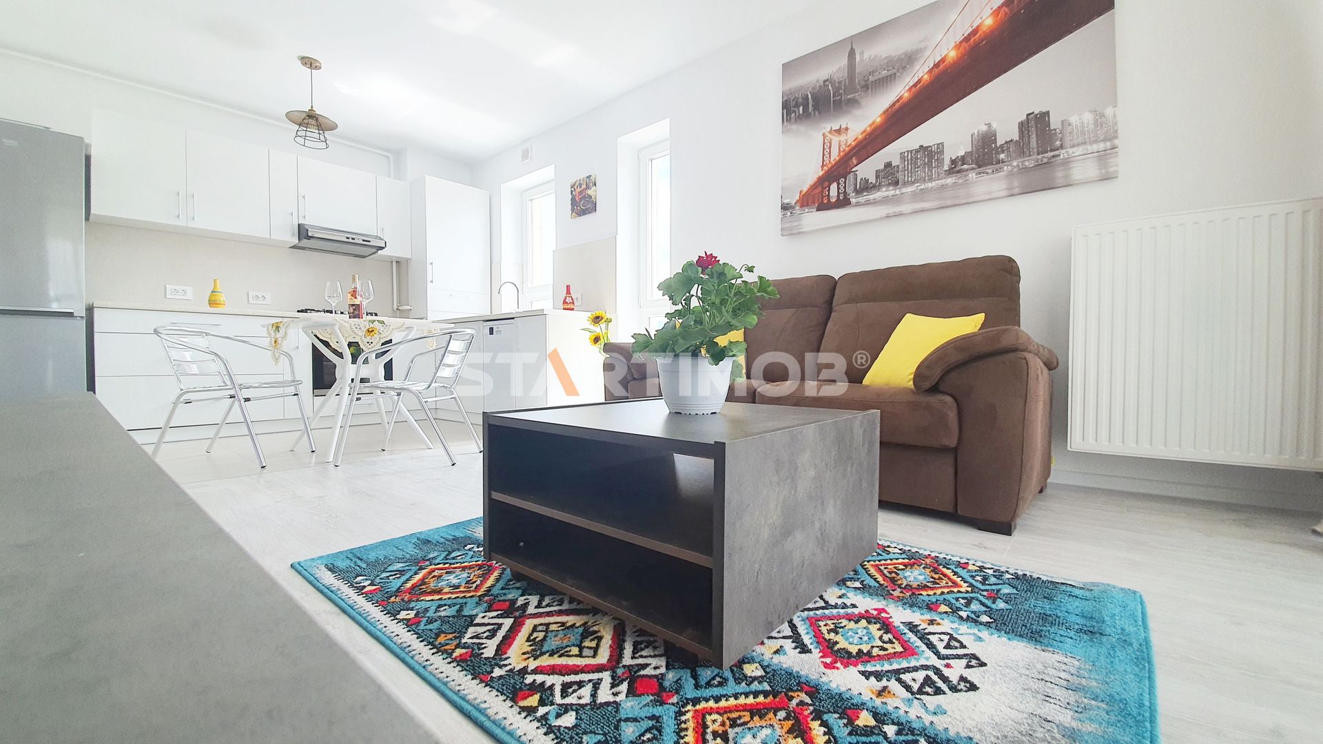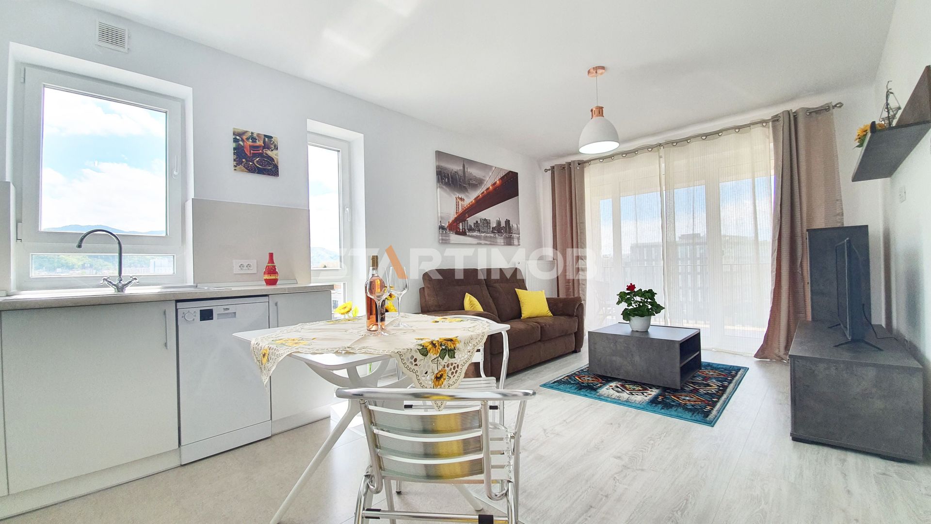 Compania STARTIMOB va propune spre inchiriere un apartament tip studio, mobilat si utilat complet, situat in Ansamblul Avantgarden Coresi, langa cel mai mare mall din Brasov – Coresi Shopping Center .