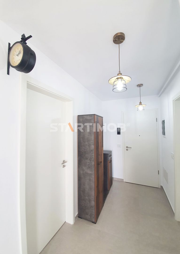 Apartamentul este de tip studio, are o suprafata totala de 47 mp si o arie utila de 43 mp, este amenajat cu mult gust si atentie la orice detaliu. Are in componenta sa un dormitor (11,80 mp), camera de zi cu dining si bucatarie open space (23,70 mp), hol (3,2 mp), baie cu cada (4,5 mp) si o terasa tip logie de 4,1 mp si este situat la etajul 5/6 blocului cu o pozitionare sud- vestica.