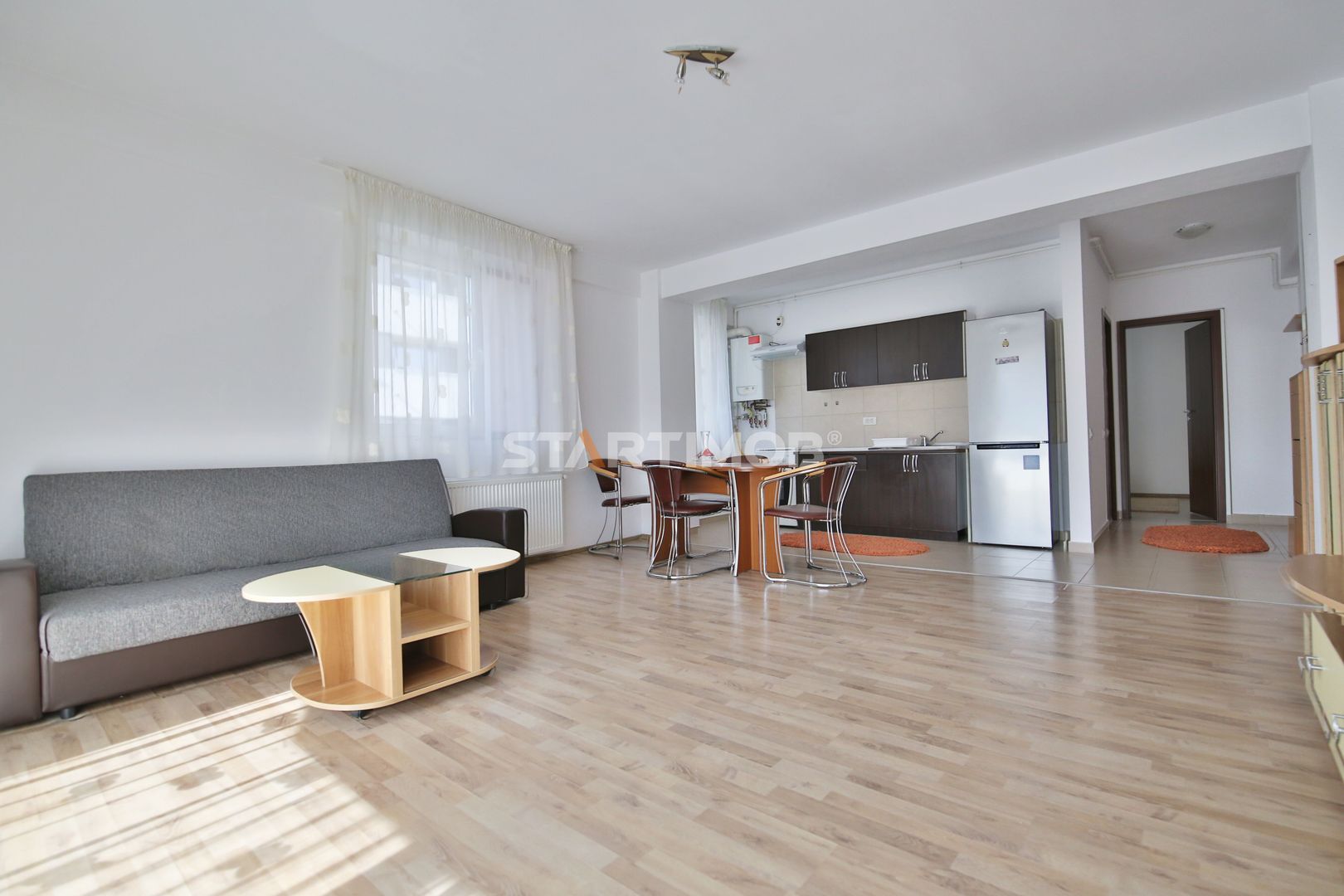 Apartamentul are o pozitionare sud estica fiind insorit tot timpul zilei, se inchiriaza mobilat si utilat asa cum se prezinta in fotografii, dispune de utilitati separate, finisaje moderne, mobilier stil minimalist, tamplarie PVC cu geam termopan, parchet, masina de spalat automata marca Bosch, bucatarie dotata si echipata, centrala termica proprie, conexiune internet ( nu exista contract in derulare, chiriasul va incheia contract cu unul dintre furnizorii agreati).