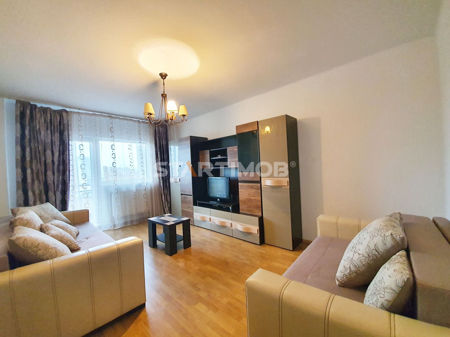 Printre dotari amintim : aragaz cu cuptor Zanussi, combina frigorifica, masina de spalat automata Arctic, TV Samsung, 2 canapele extensibile in living, pat dublu in dormitor, dressing-uri, conexiune cablu si internet (chiriasul va incheia contract pe numele sau cu furnizorul agreat).