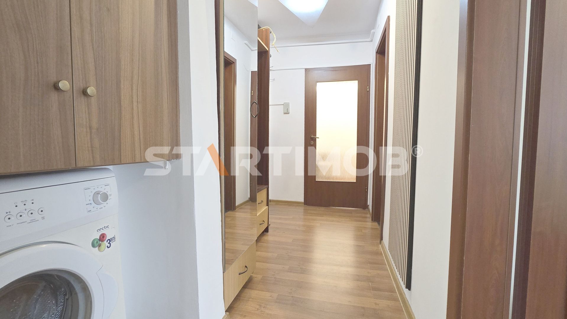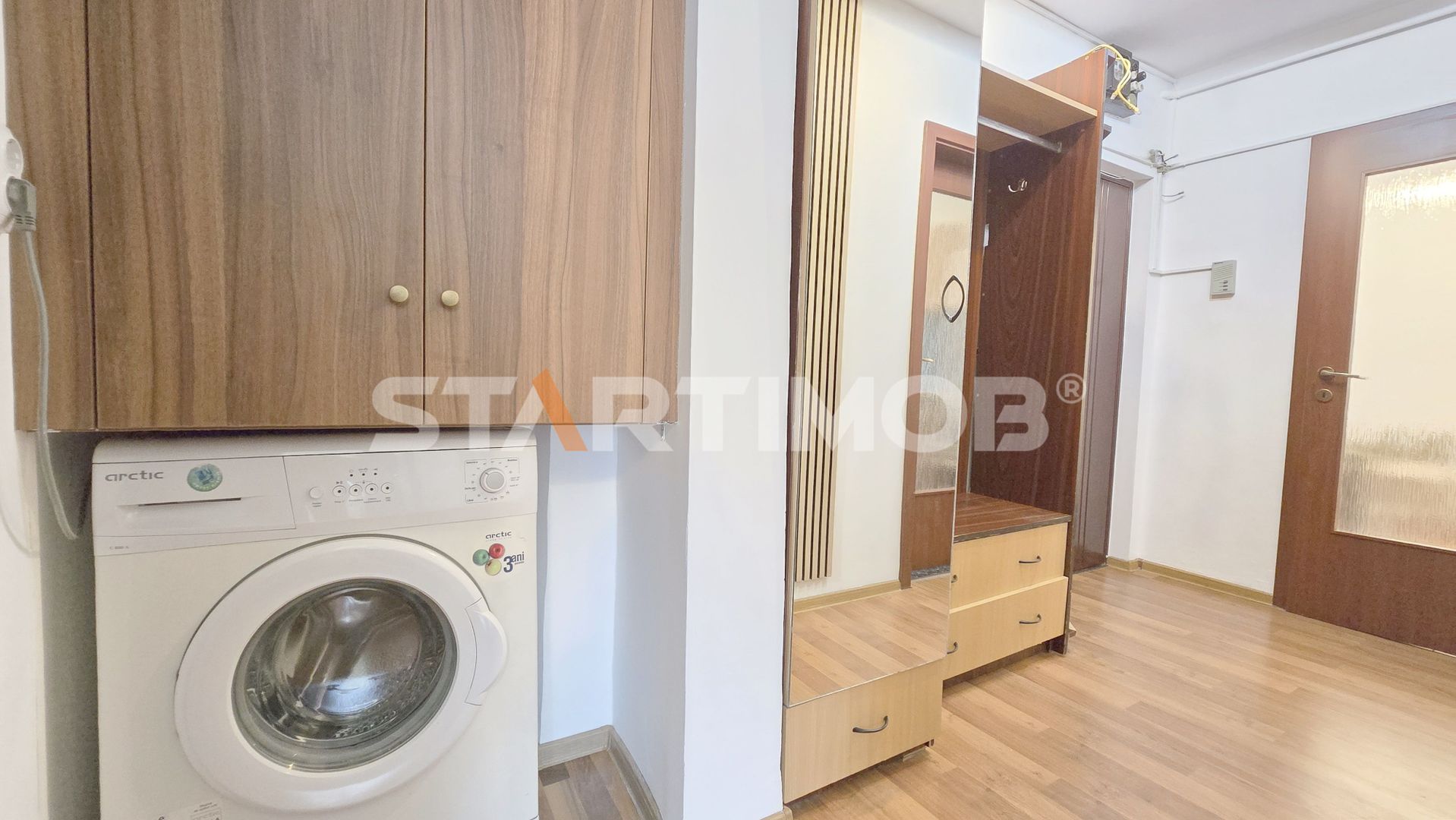 Apartamentul dispune de utilitati separate, incalzire cu centrala termica proprie, tamplarie PVC cu geam termopan, parchet, gresie, faianta, iar printre dotari mentionam bucataria utilata cu aragaz cu cuptor Arctic, combina frigorifica si masina de spalat automata marca Arctic, canapea extensibila in living, pat dublu cu saltea si dulap tip dressing in dormitor.