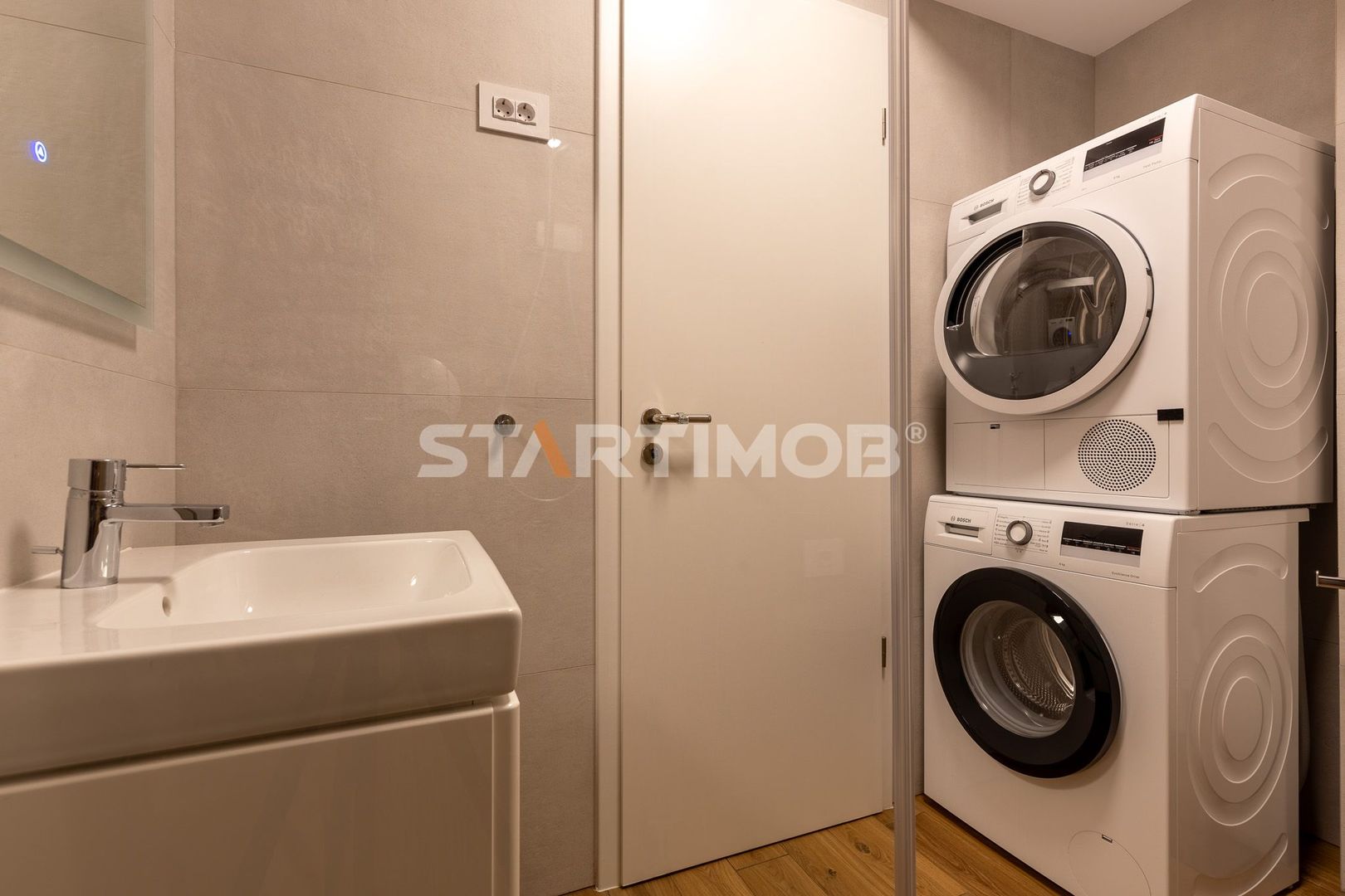 Apartamentul dispune de finisaje premium si mobilier nou, incalzire in pardoseala cu centrala proprie pe gaz marca Viessmann cu thermostat de ambient in fiecare camera, videointerfon, conexiune internet si cablu in derulare, sistem de aer conditionat, electrocasnice precum combina frigorifica Electrolux, plita pe inductie, cuptor electric si hota electrica Electrolux, masina de spalat vase, toaster Philips, fierbator apa Russel Hoobs, cafetiera Krups, TV Smart LCD in living, masina de spalat automata si uscator rufe marca Bosch, etc .