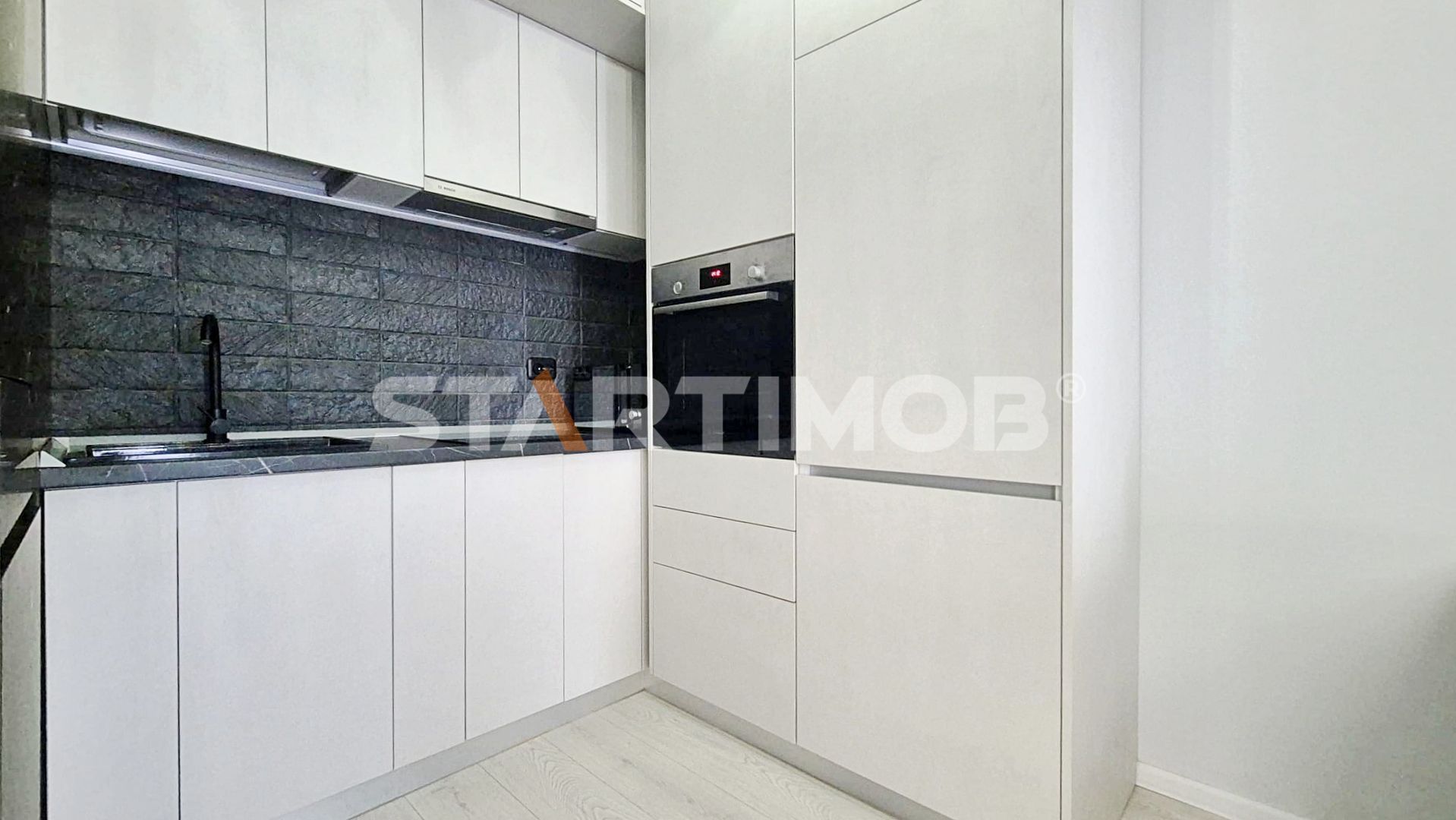 Bucataria este complet mobilata și utilata cu electrocasnice Bosch – plita și cuptor electric, hota, combina frigorifica si mașina de spalat rufe automata etc.