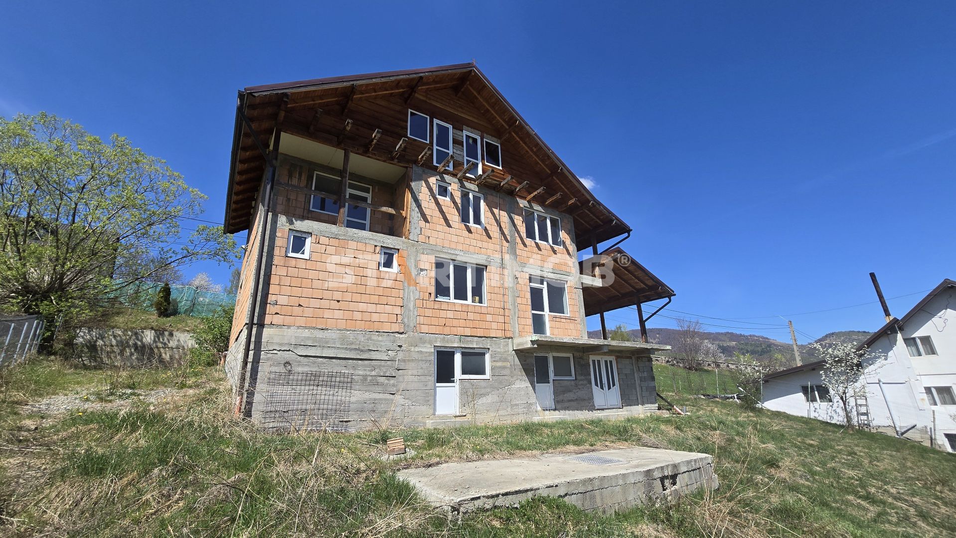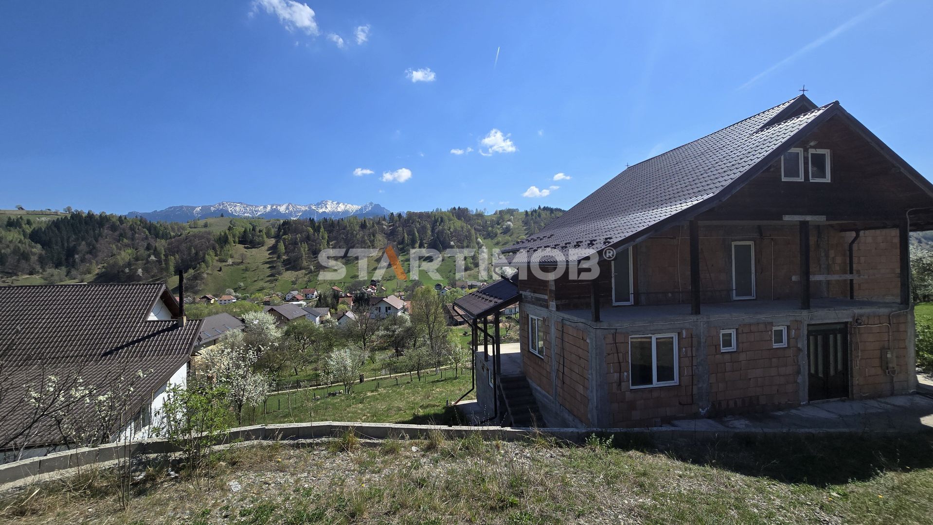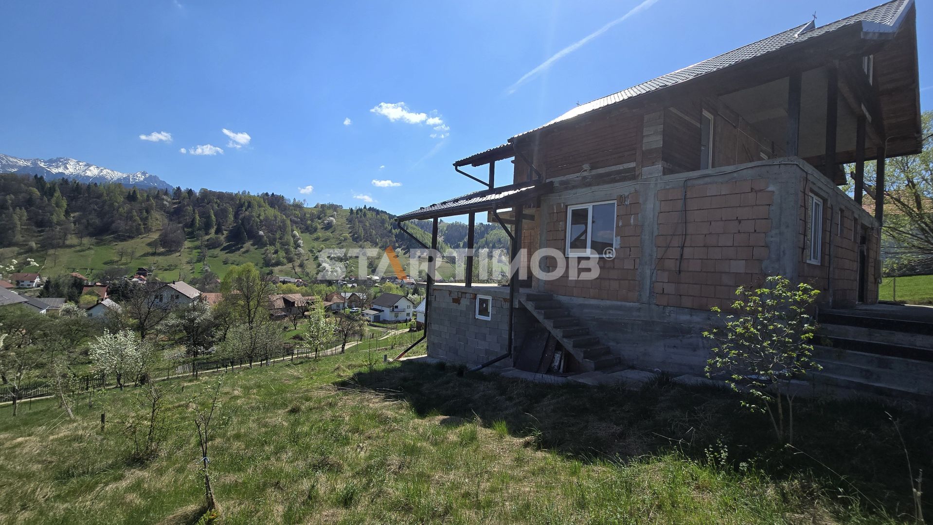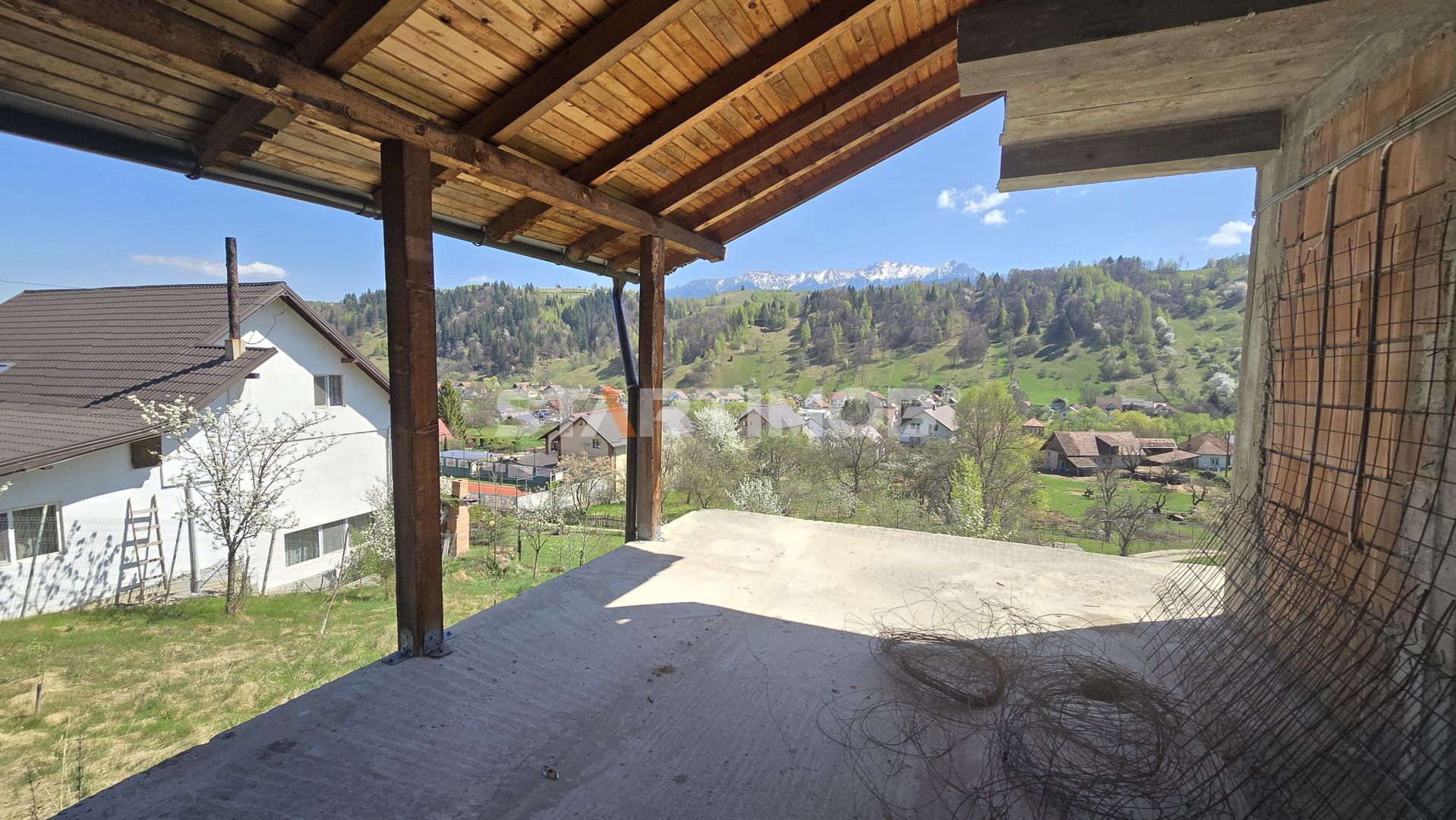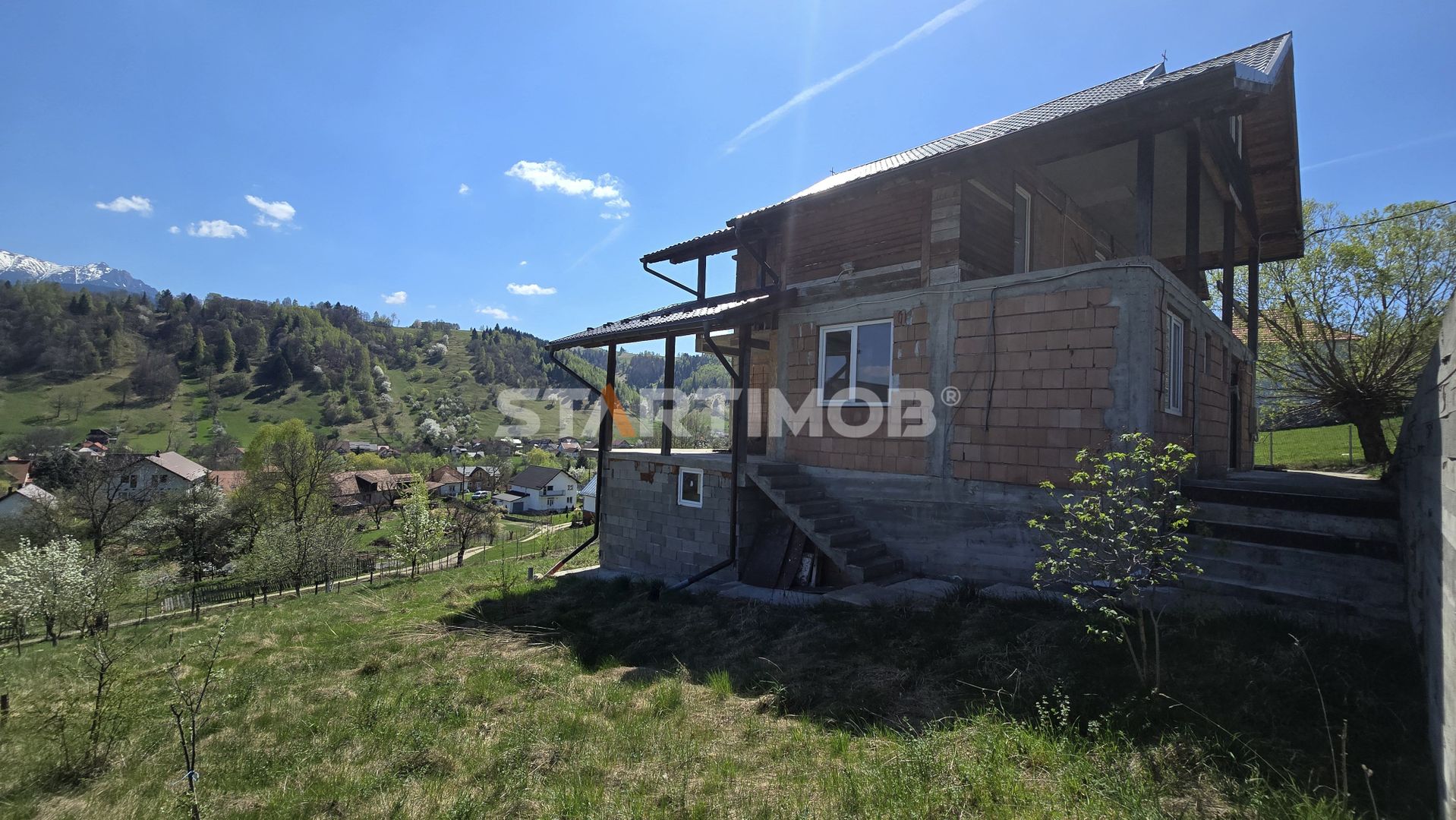 Va propun spre achizitie, o casa individuala in constructie, inceputa in anul 2012 din caramida situata in localitatea Moieciu de Jos cu acces direct din DN 73.