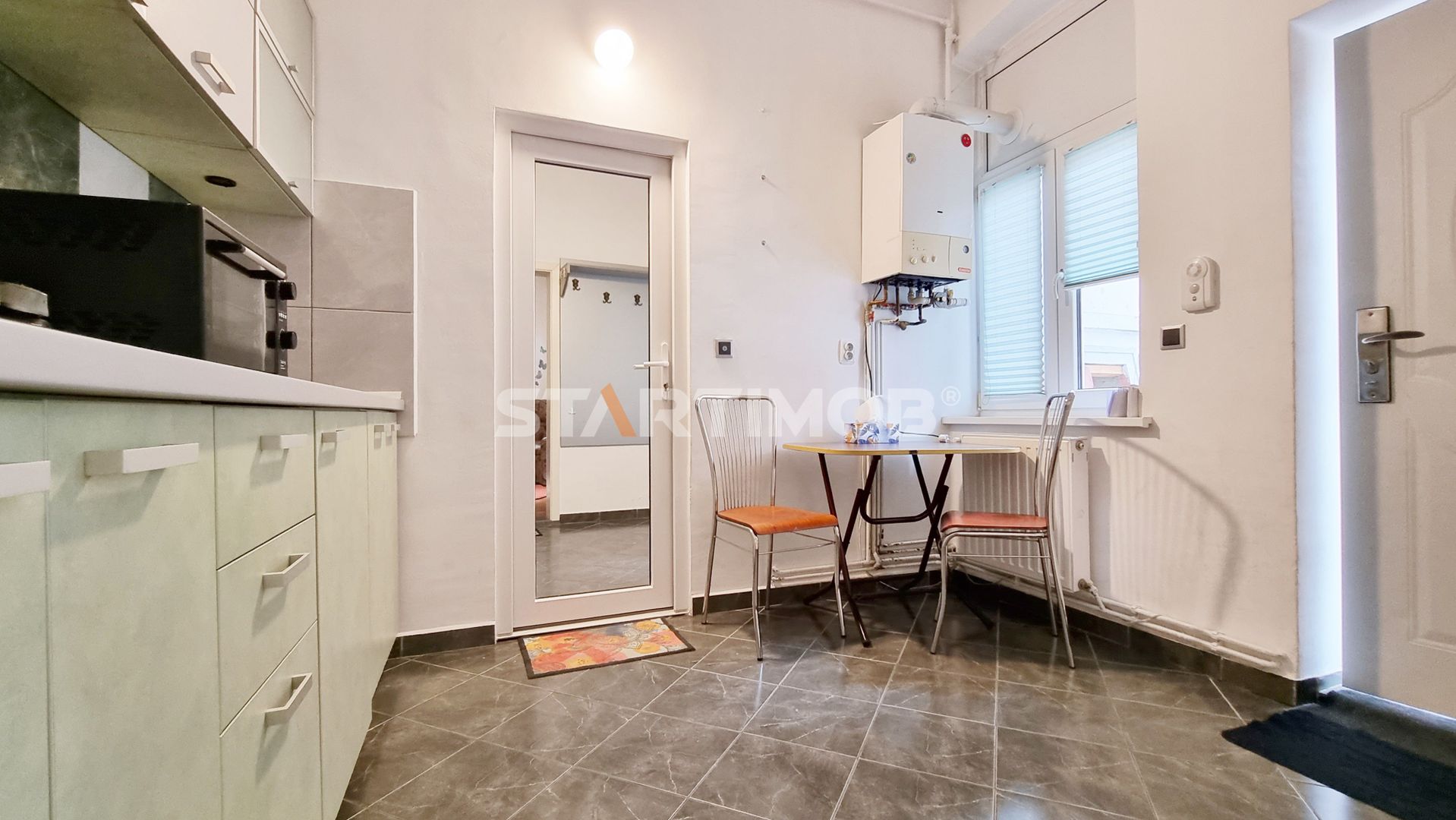 Compania STARTIMOB va propune spre inchiriere o garsoniera situata central, la parterul unei case de pe str Bisericii Romane .