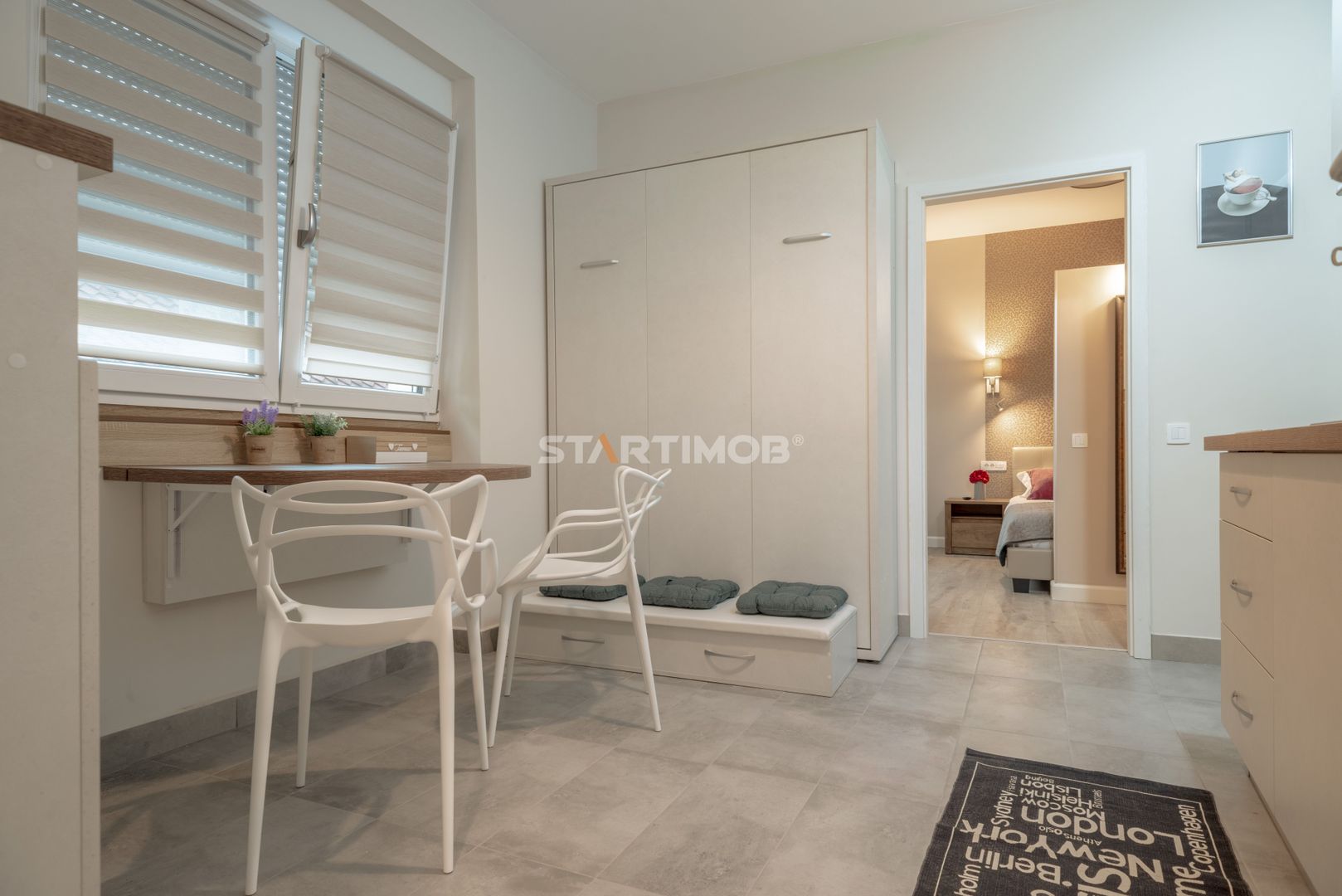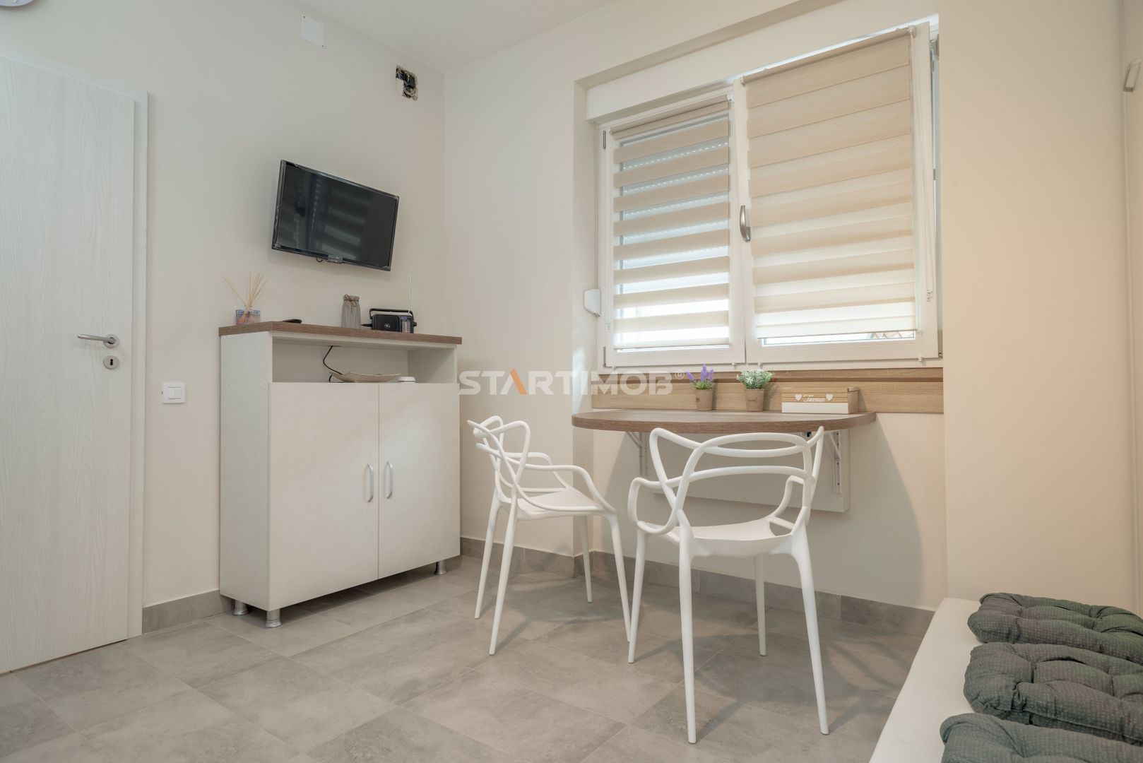 Studioul are o structura semidecomandata, este compus din dormitor, living open space cu bucataria si dining, baie cu aerisire naturala, terasa comuna de 35 mp in curtea interioara a imobilului .