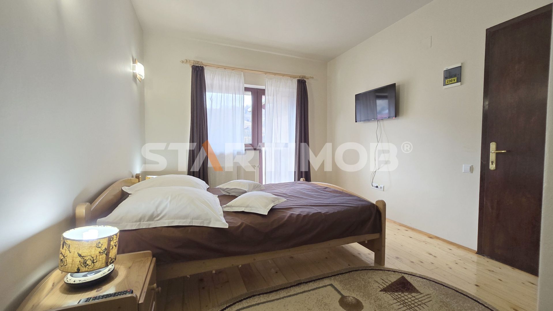 STARTIMOB va propune spre achizitie o pensiune turistica mobilata si utilata complet conform standardelor de 3 margarete, situata in Bran, satul Simon.