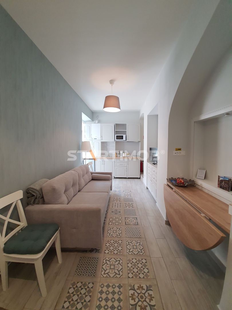 Agentia Startimob va propune spre inchiriere un studio situat pe str. Republicii, la etajul 1 al unei case din zona Centrului Istoric al Brasovului, in imediata vecintatate a Bisericii Negre si a Pietii Sfatului .