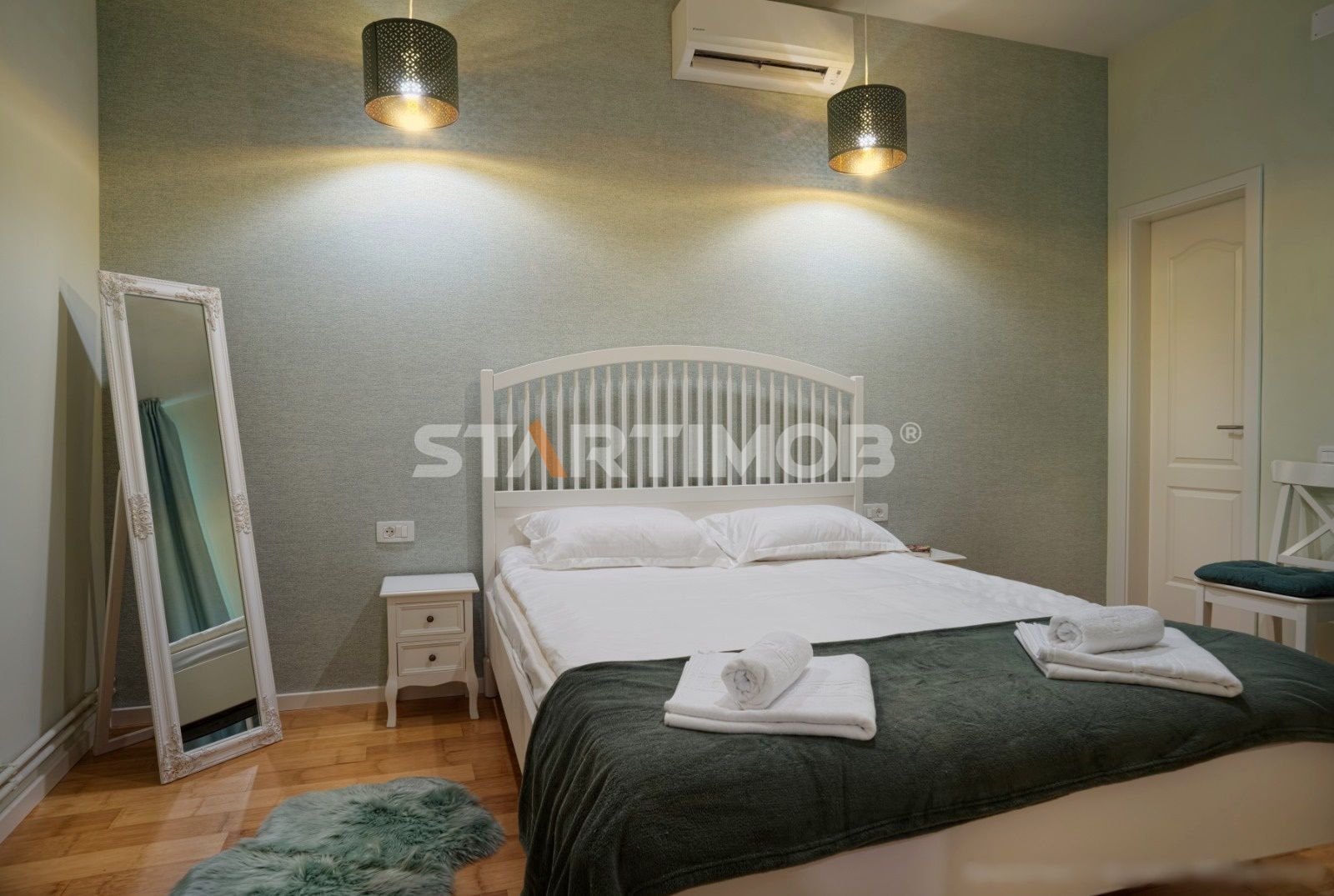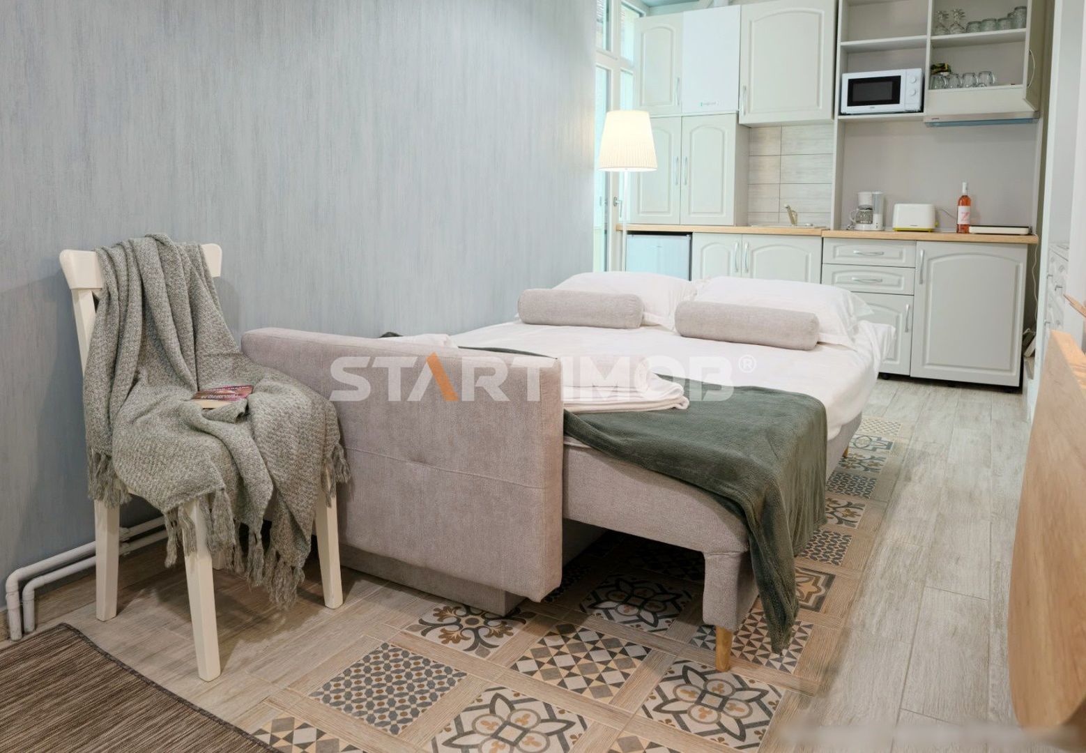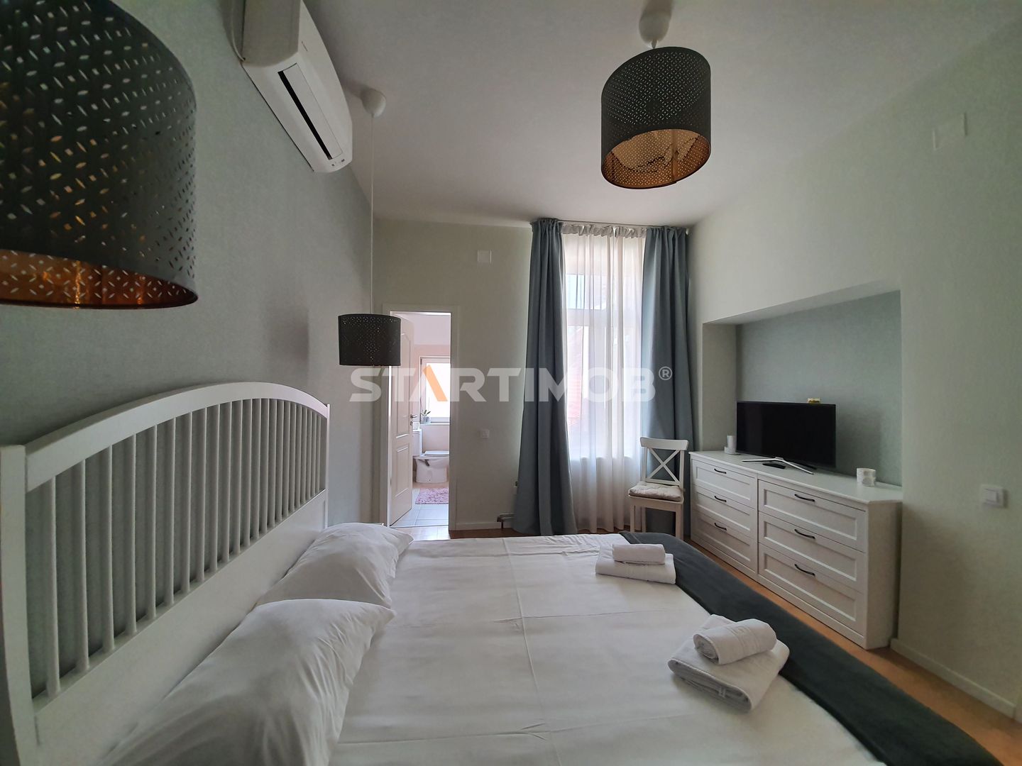 Studioul este amplasat intr-o zona linistita avand toate geamurile spre curtea interioara a imobilului, este complet mobilat și utilat, are o suprafata utila de 38 mp, structura semidecomandata, fiind compus din dormitor cu pat matrimonial de 1.60m, o camera cu zona de zi cu o canapea mare extensibila, kitchineta (cu plită de inducție, hota electrica, cuptor cu microunde, mini frigider, etc,) , sistem de aer condiționat, TV -uri Smart in camere, conexiune cablu si internet in derulare, baie cu dus cu acces direct din dormitor .