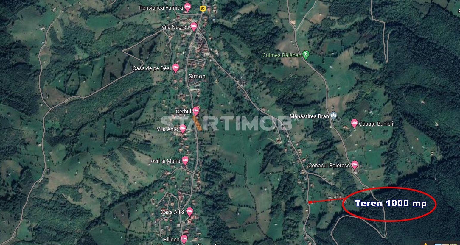 Compania STARTIMOB va propune spre achizitie, in sistem de Reprezentare Exclusiva si cu COMISION 0% din partea cumparatorului, un teren intravilan situat in Bran, Satul Simon, str. Valea Tisei.