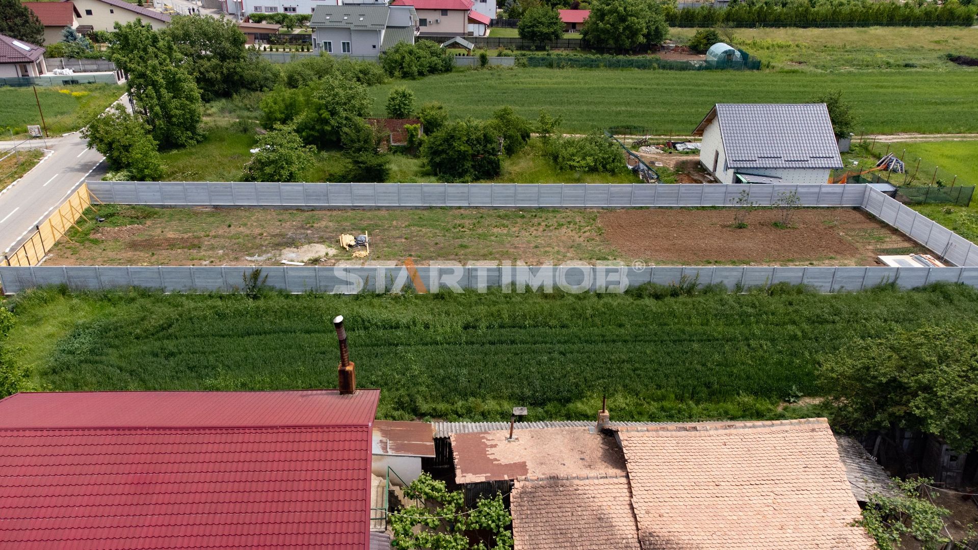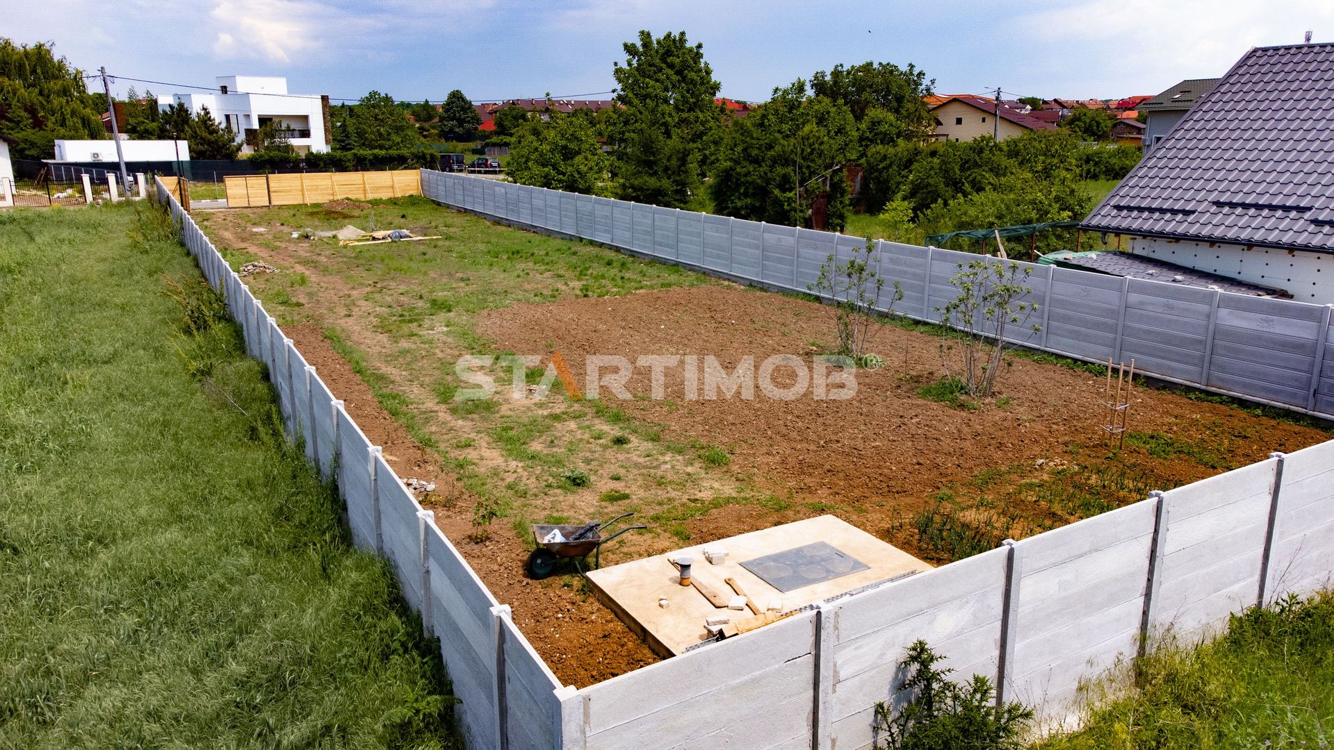 Suprafata terenului este de 997 mp, imprejmuit, cu fundatie si gard din beton pe laterale si latura din spate iar latura de la strada de un gard din lemn.
